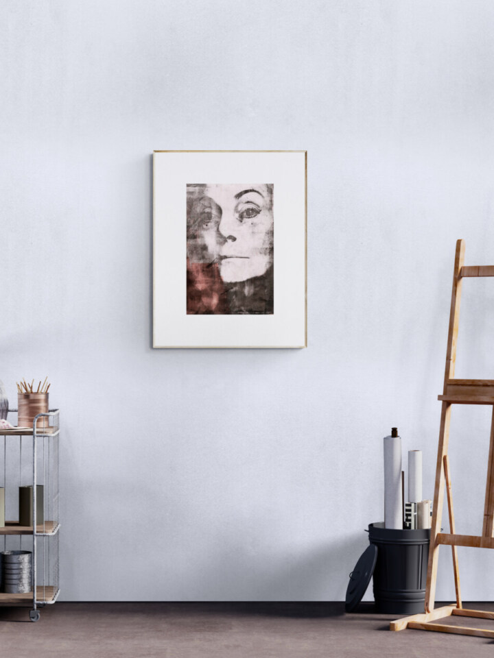 Taidekuva on toteutettu gel press -menetelmän avulla. Alkuperäinen, musta-valkokuva on vedostettu geelilevylle, josta se on nostettu akryylivärein akvarellipaperille.