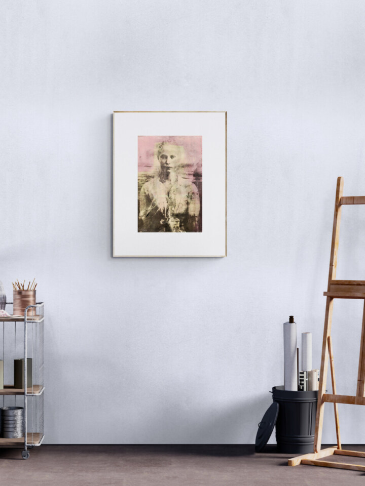 Taidekuva on toteutettu gel press -menetelmän avulla. Alkuperäinen, musta-valkokuva on vedostettu geelilevylle, josta se on nostettu akryylivärein akvarellipaperille.