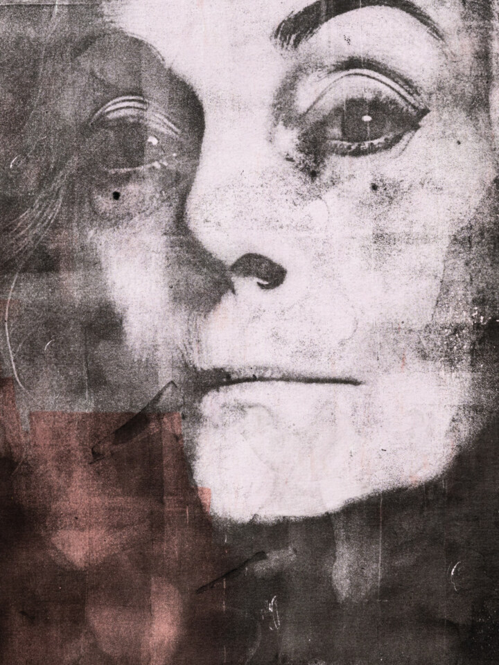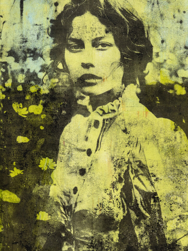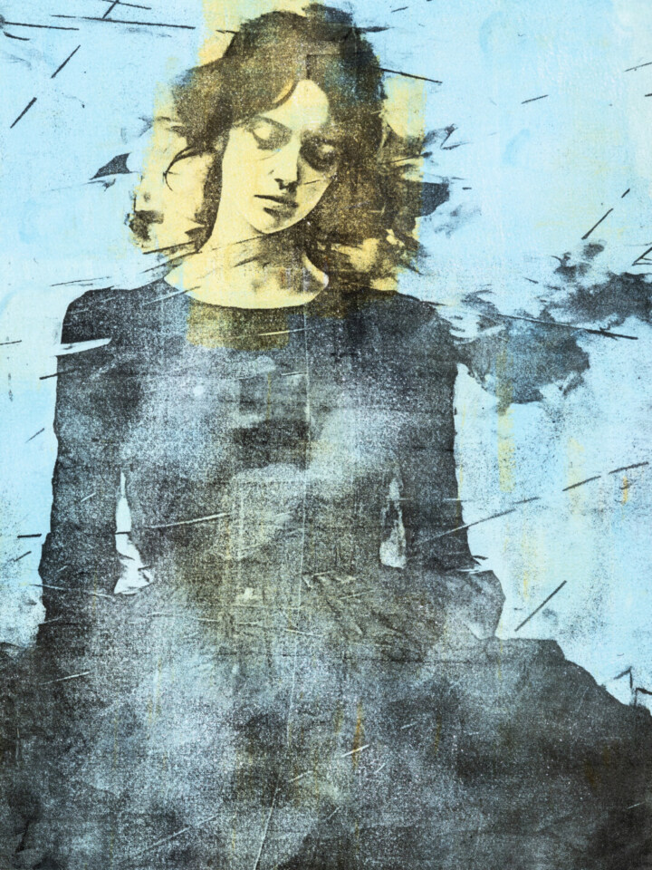 Taidekuva on toteutettu gel press -menetelmän avulla. Alkuperäinen, musta-valkokuva on vedostettu geelilevylle, josta se on nostettu akryylivärein akvarellipaperille.